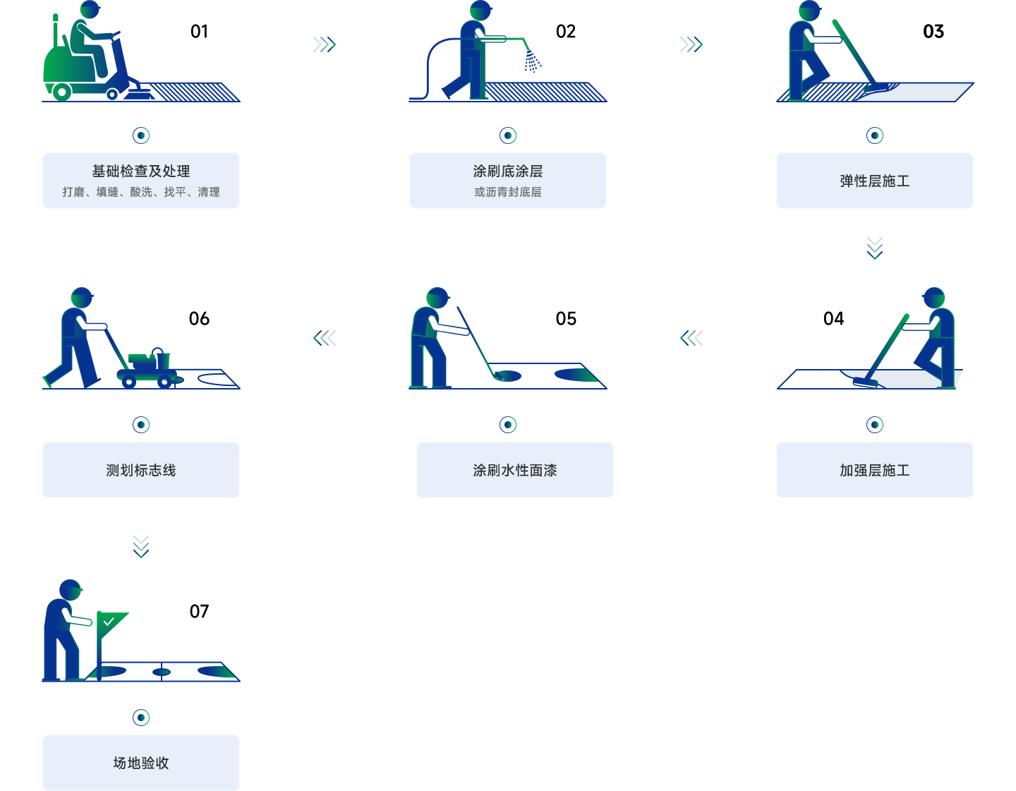 底涂層(基層為水泥混凝土?xí)r):由單組份聚氨酯膠水涂刷而成,增加底層與基礎(chǔ)層的粘接力;